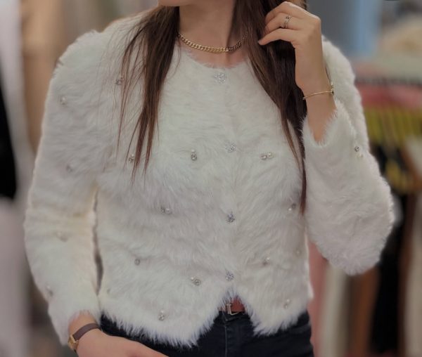Mehka in topla jopica, okrašena z lepimi kamenčki. Udobna za nošenje in popolna za vsak dan ali posebne trenutke. Univerzalna velikost