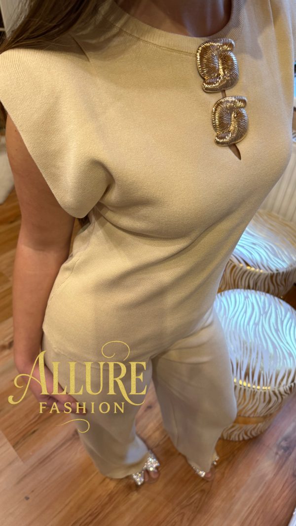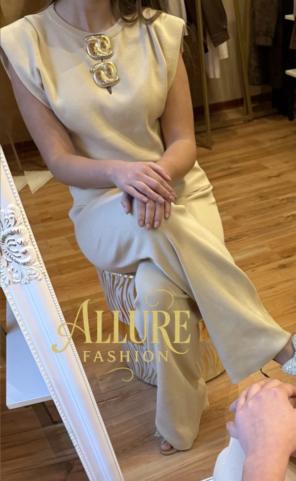 Komplet v univerzalni velikosti, z zlatimi detajli.