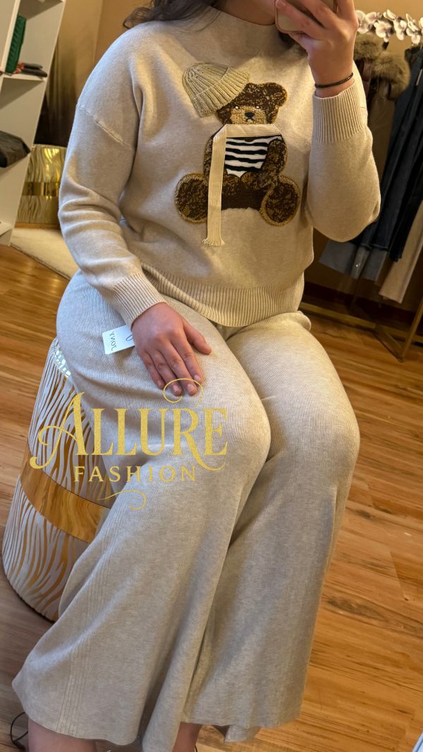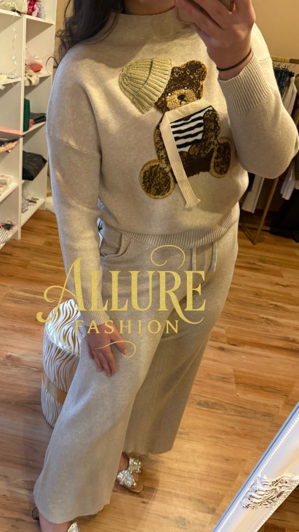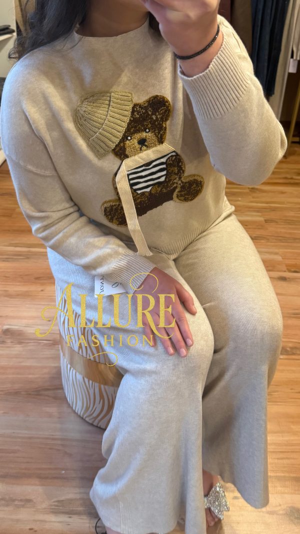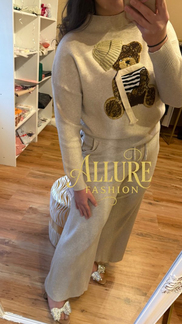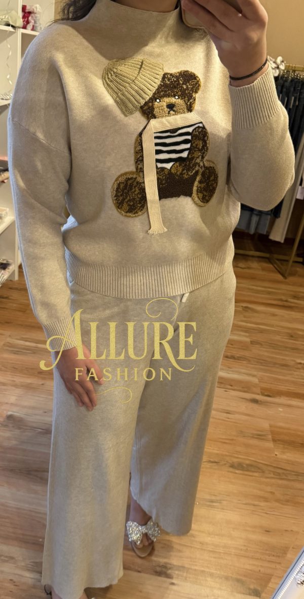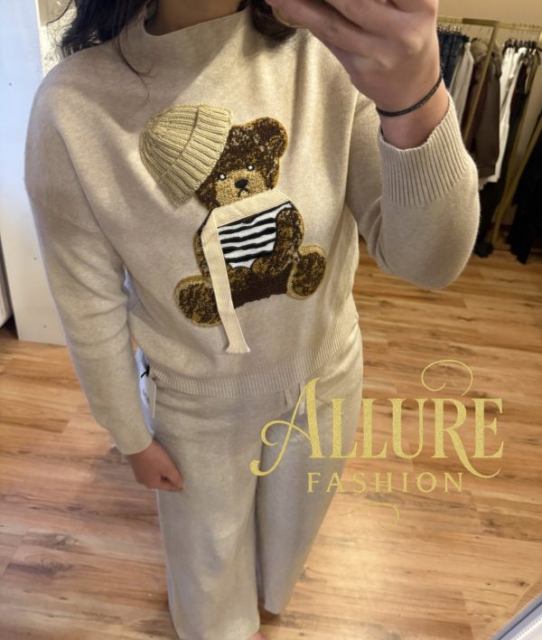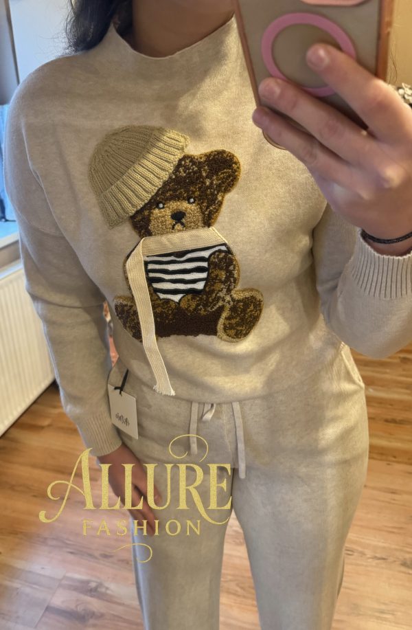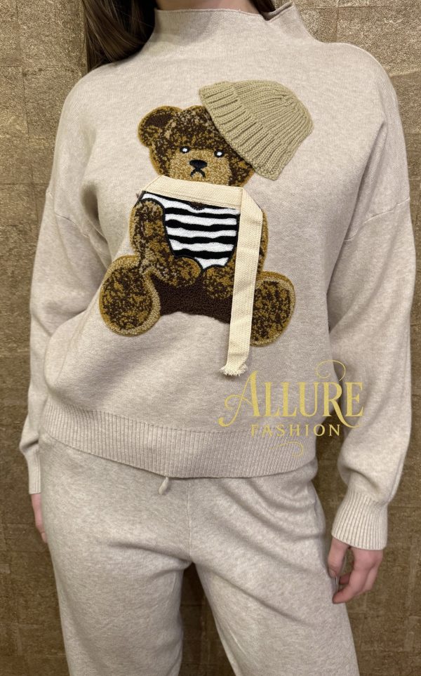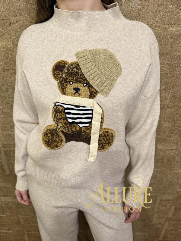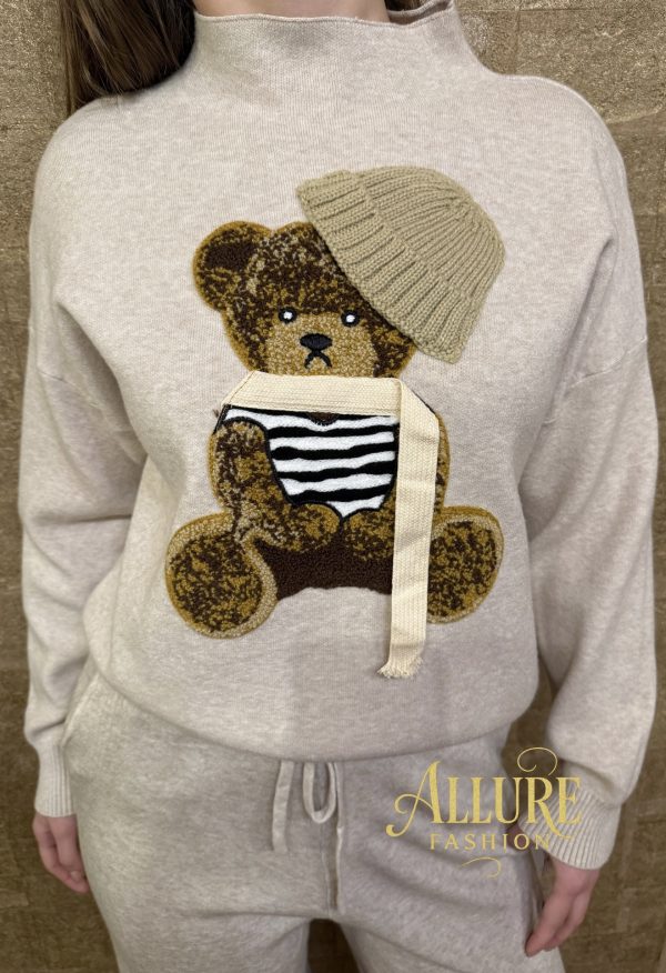 Mehak, topel in izjemno ljubek pulover v nežni bež barvi, okrašen s simpatičnim motivom medvedka.